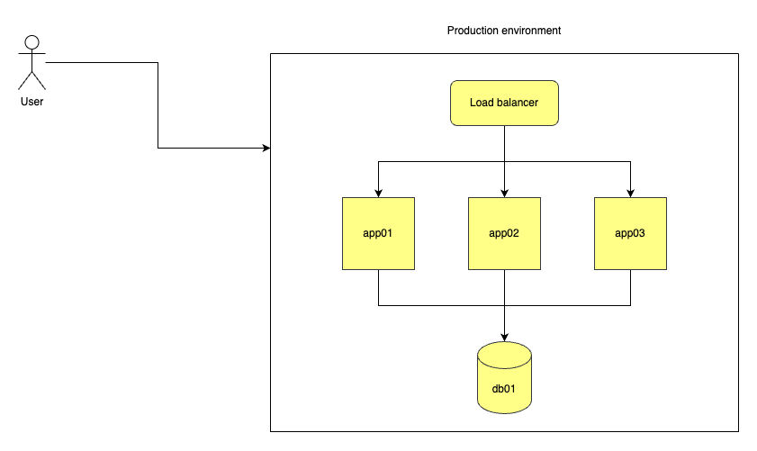 So there will be a load balancer that will handle users’ requests and redirect them to the app servers. The app servers will use the one and only db server.